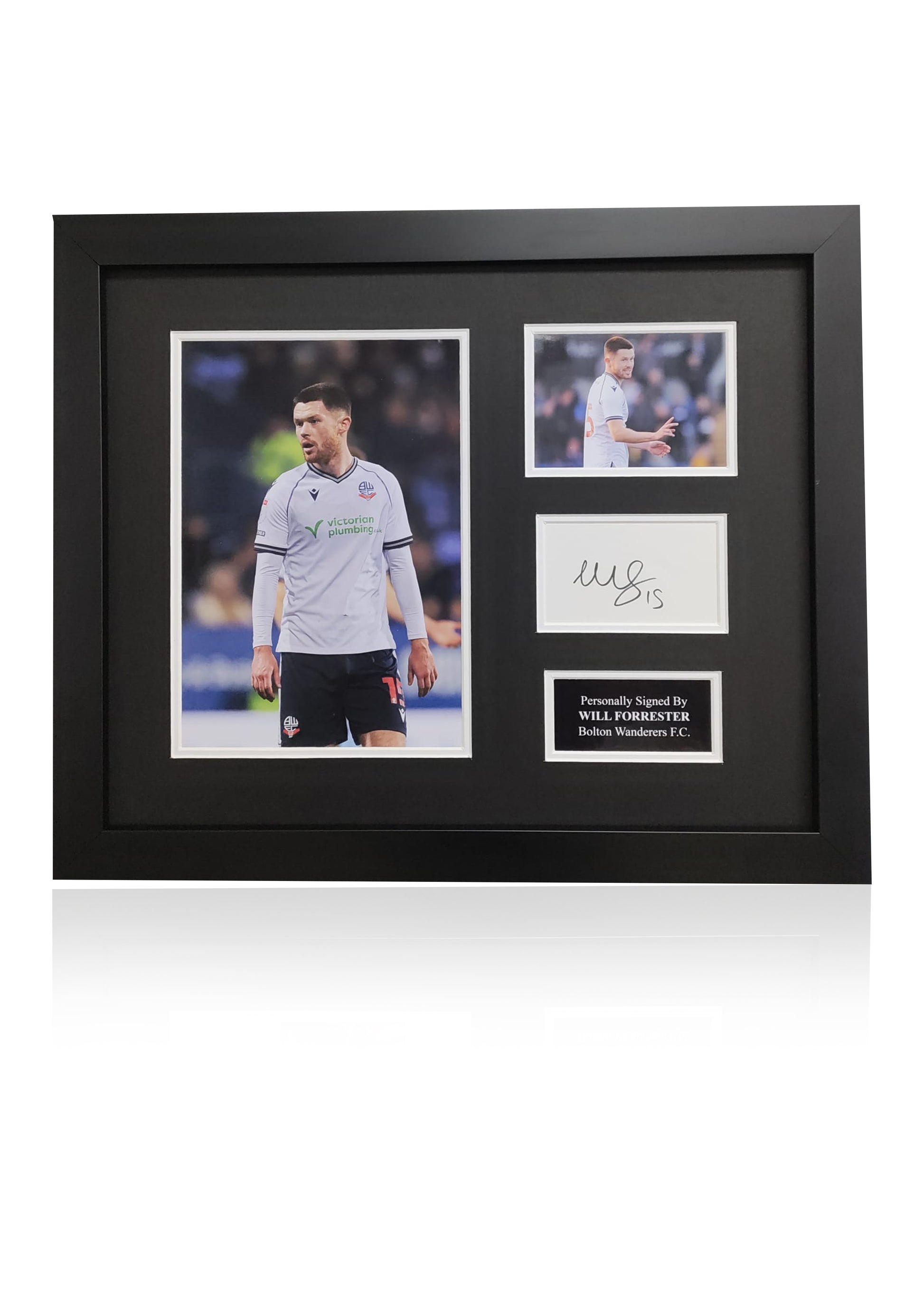 Will Forrester Bolton Wanderers F.C. signed framed photo card montage