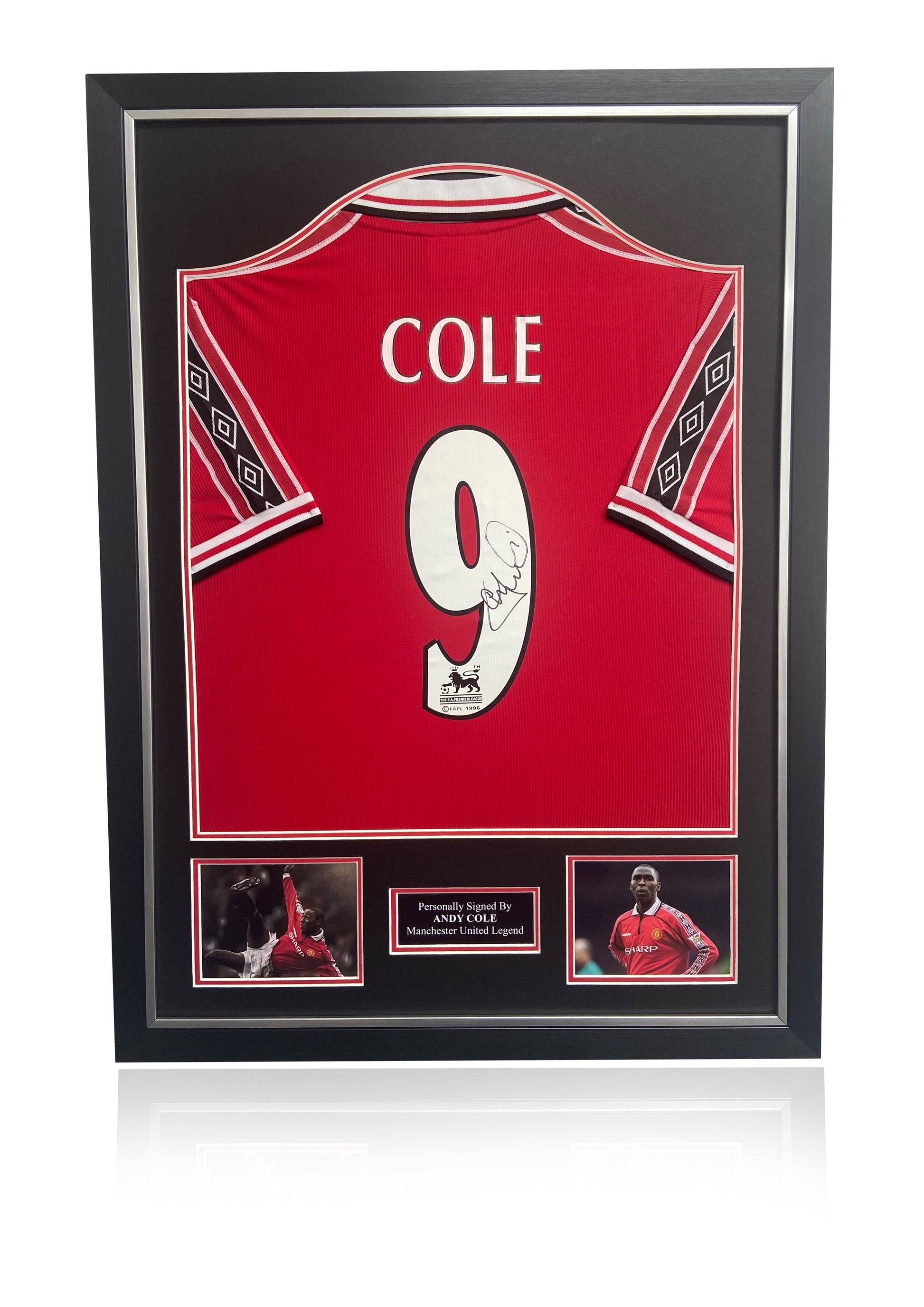 Andy Cole Manchester United 99 treble hand signed framed red home shirt