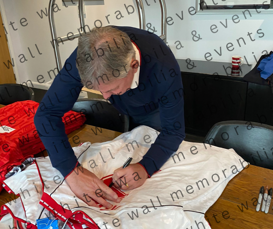 Genuine hand signed Manchester United 1991 CWC cup winners cup shirt by Bryan Robson with captain arm band and original programme football memorabilia MUFC