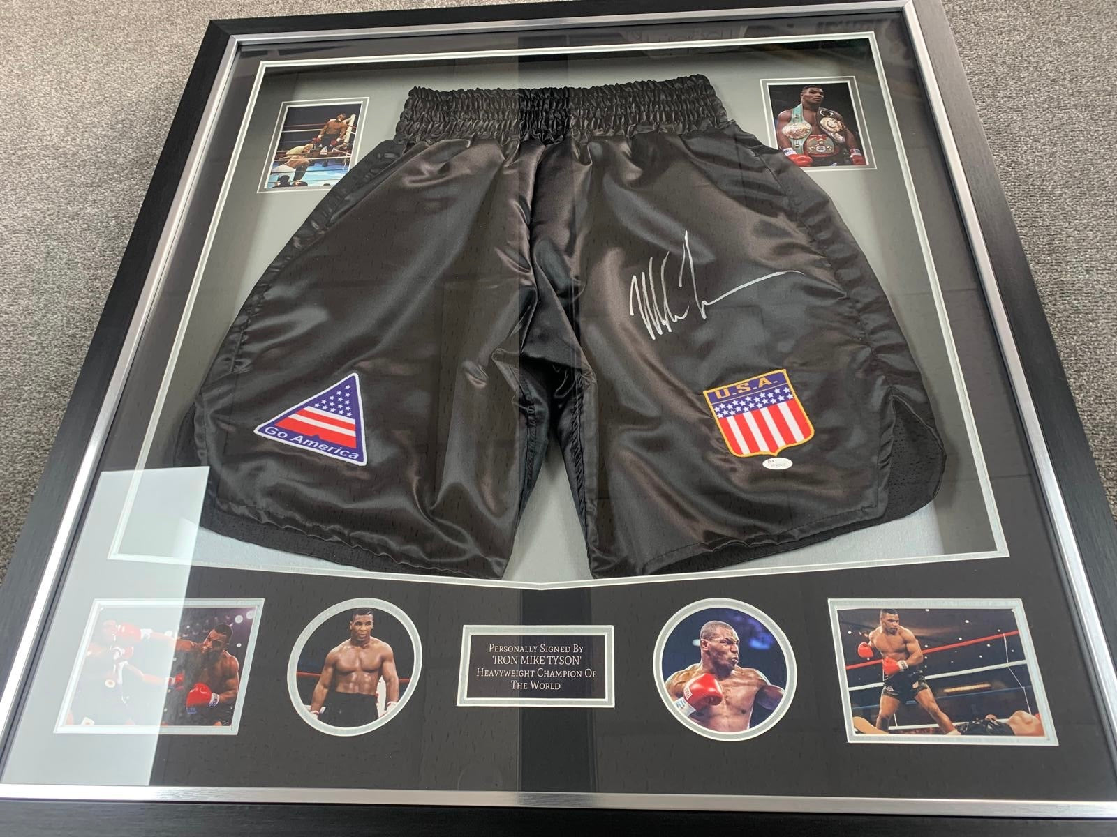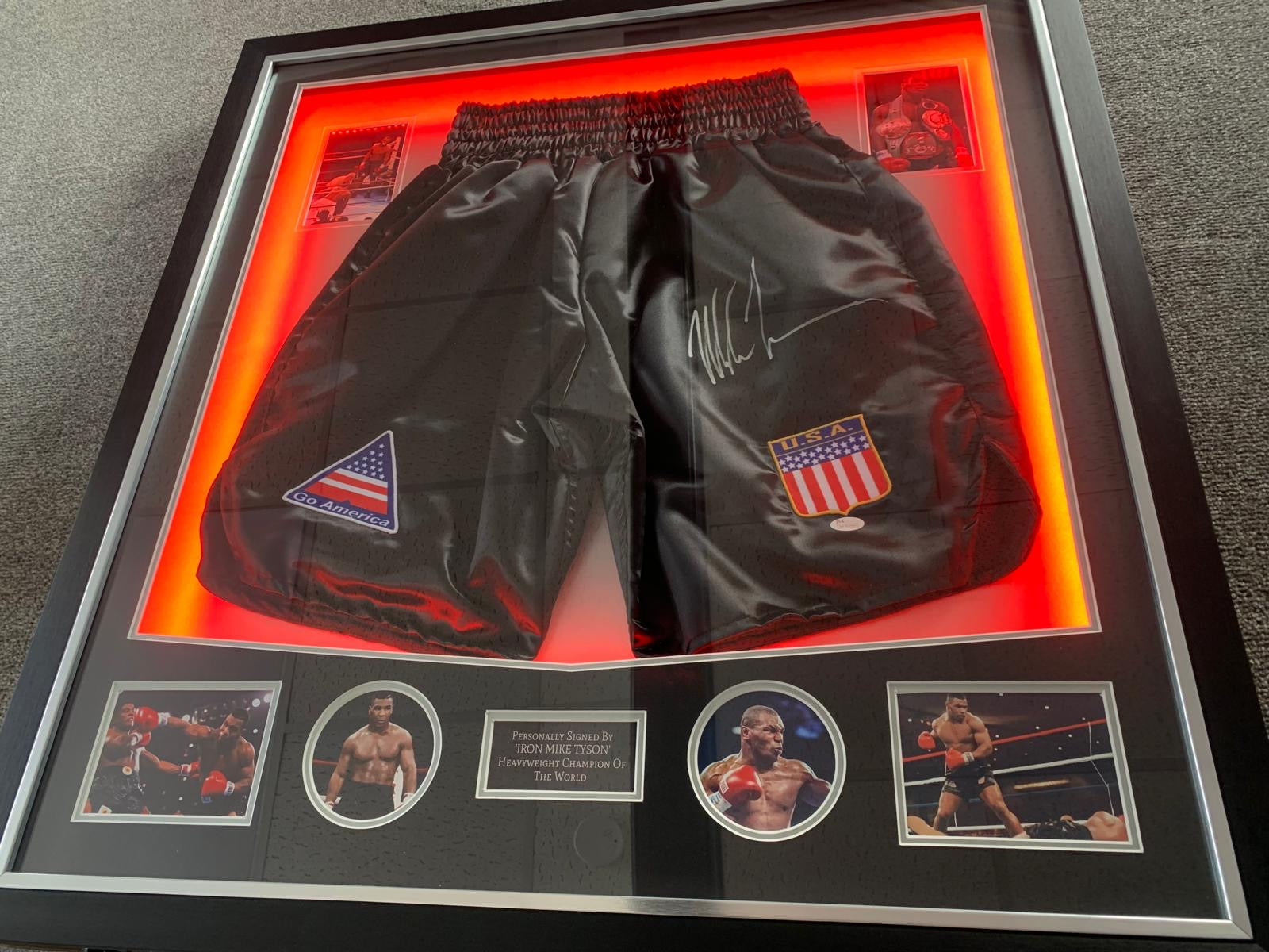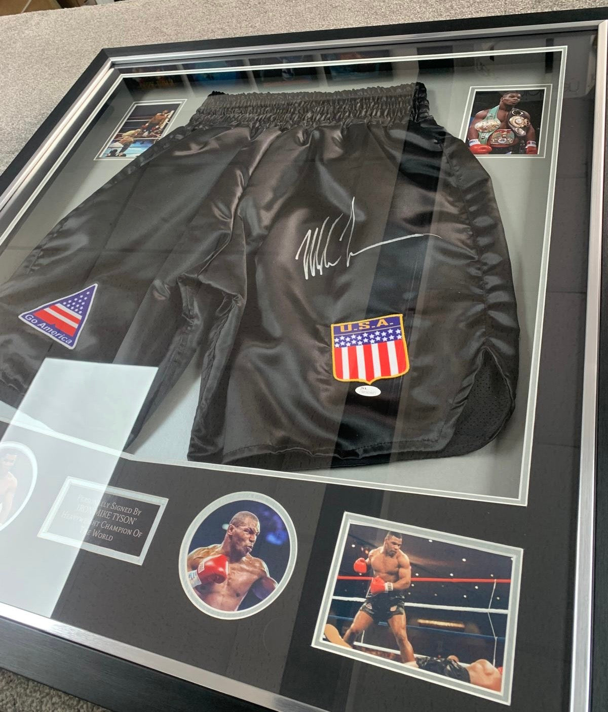 Genuine hand signed boxing shorts by the heavyweight champion of the world Mike Tyson legend boxing memorabilia