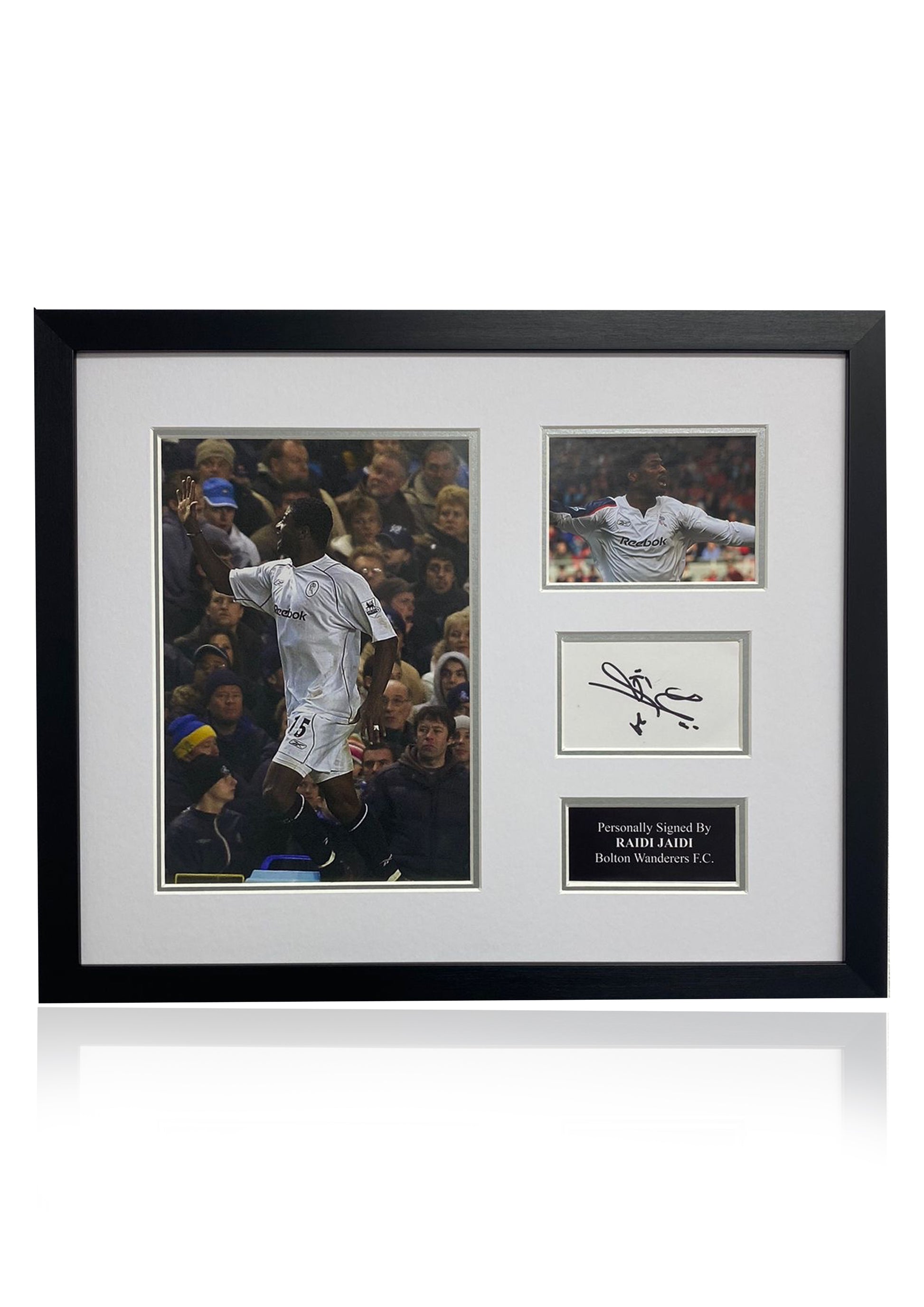 Genuine hand signed photo card montage by Bolton Wanderers legend Raidi Jaidi football memorabilia BWFC