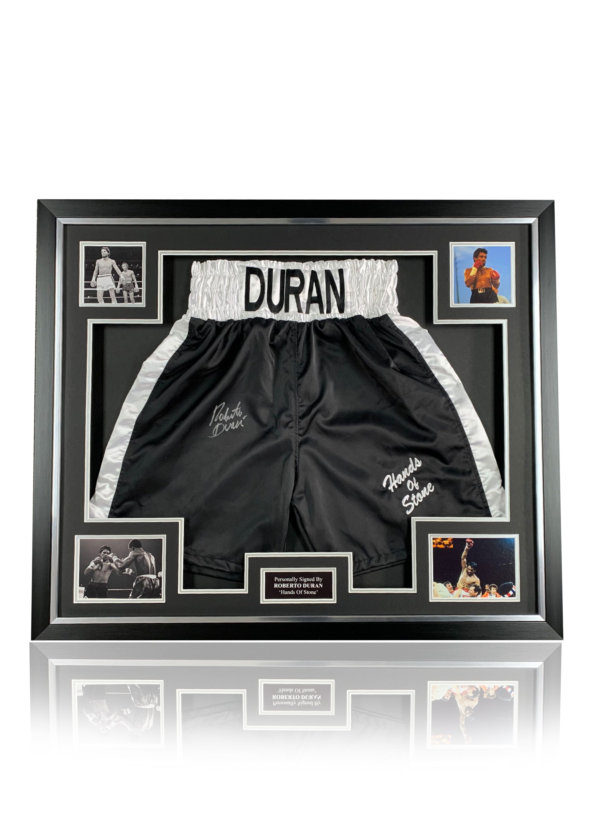 Genuine hand signed boxing shorts by Roberto Duran boxing memorabilia