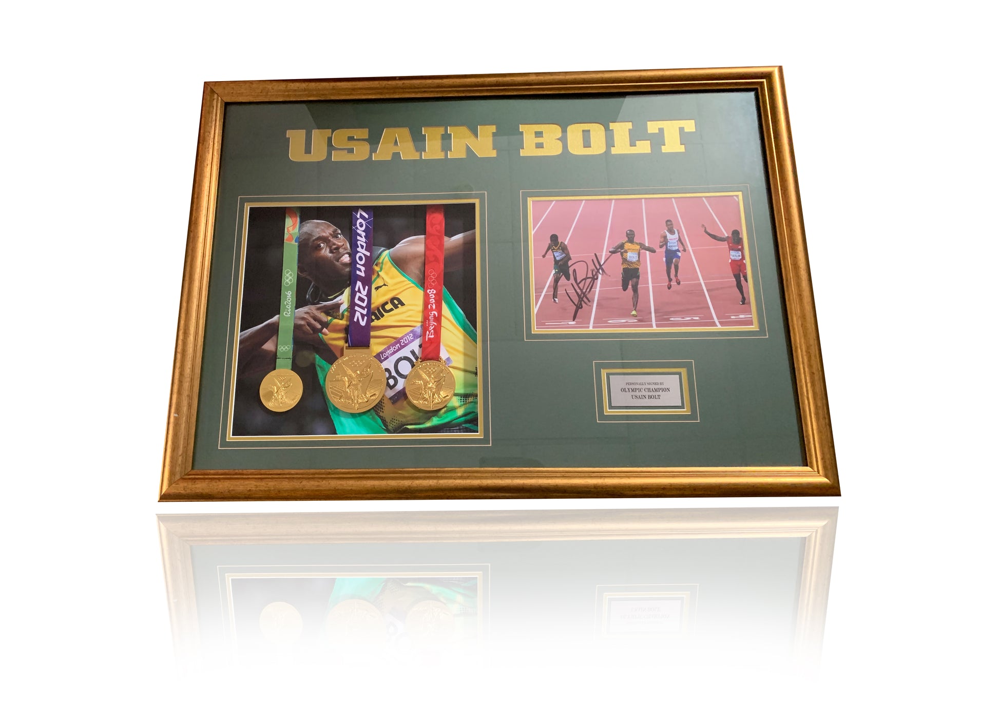 Usain Bolt Olympic signed photo montage with medals
