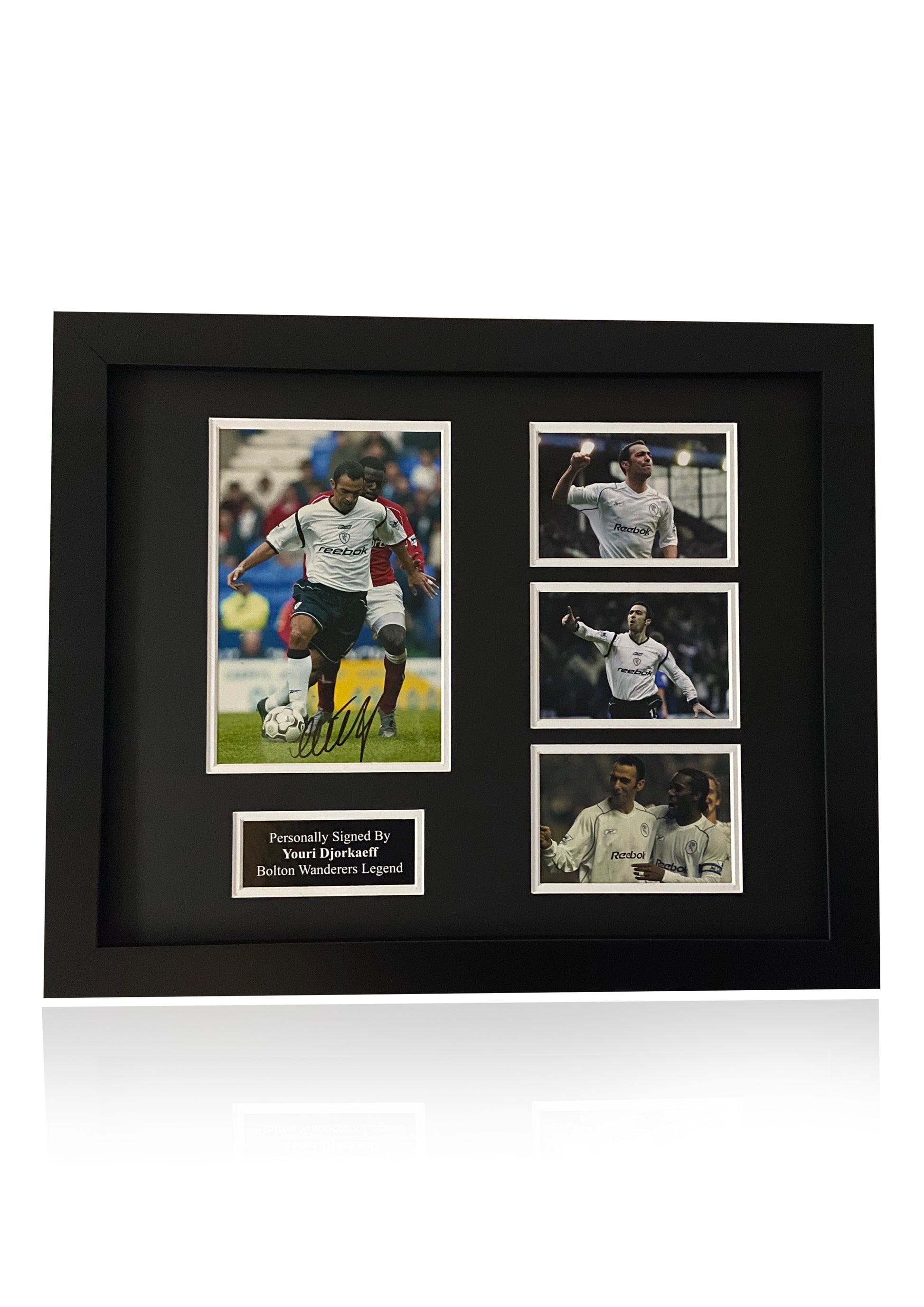Genuine hand signed photo montage hand signed by Bolton Wanderers Legend Youri Djorkaeff football memorabilia BWFC
